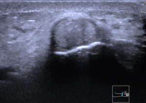 La valoración física y el examen clínico por un médico como la Dra. Vivian Tecú, es de suma importancia y nos provee el diagnóstico, con tests como el de FINKELSTEIN la probabilidad del diagnóstico aumenta. Sin embargo en la actualidad apoyarse de un estudio diagnóstico como la ecografía de muñeca (ultrasonido de imagen) brinda datos y cambios que confirman el diagnóstico como en las imágenes que vemos abajo.